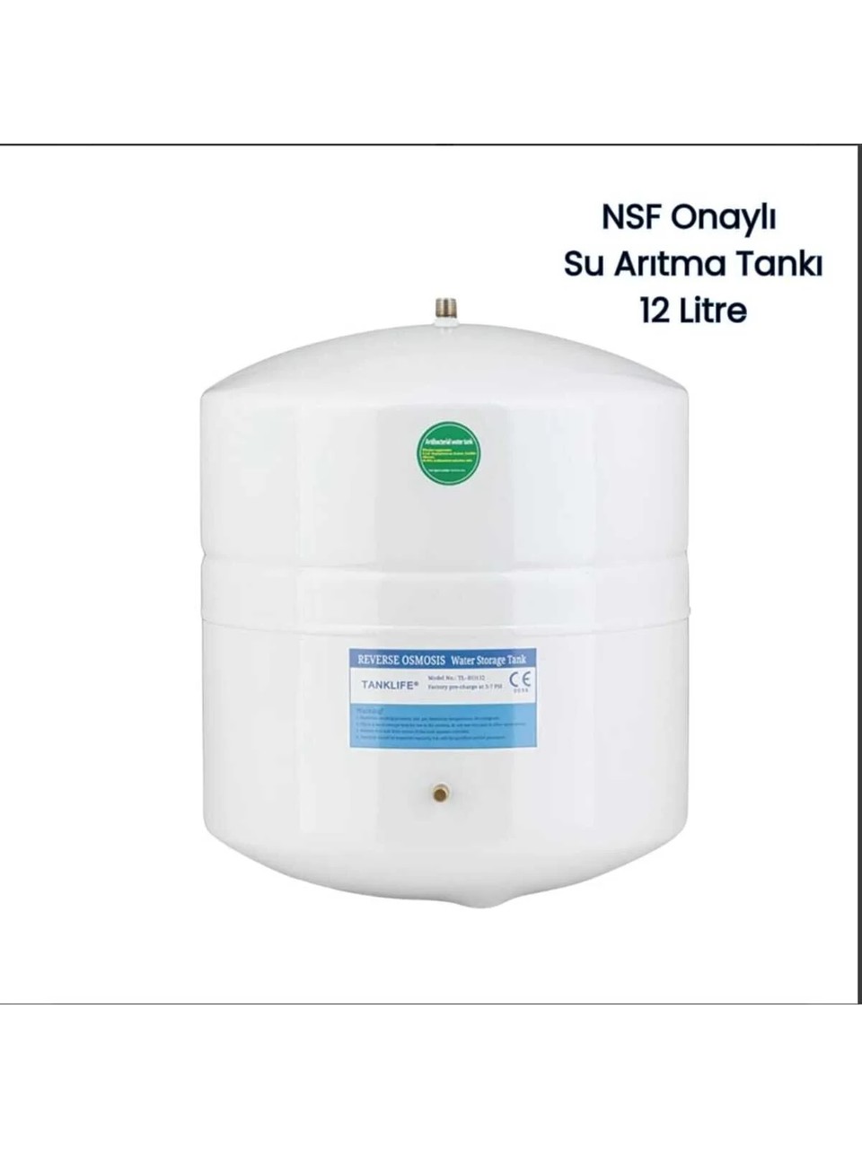 – NSF onaylı, yüksek kaliteli malzeme ile üretilmiş olup, 3.2 galon (12 litre) kapasiteye sahiptir.